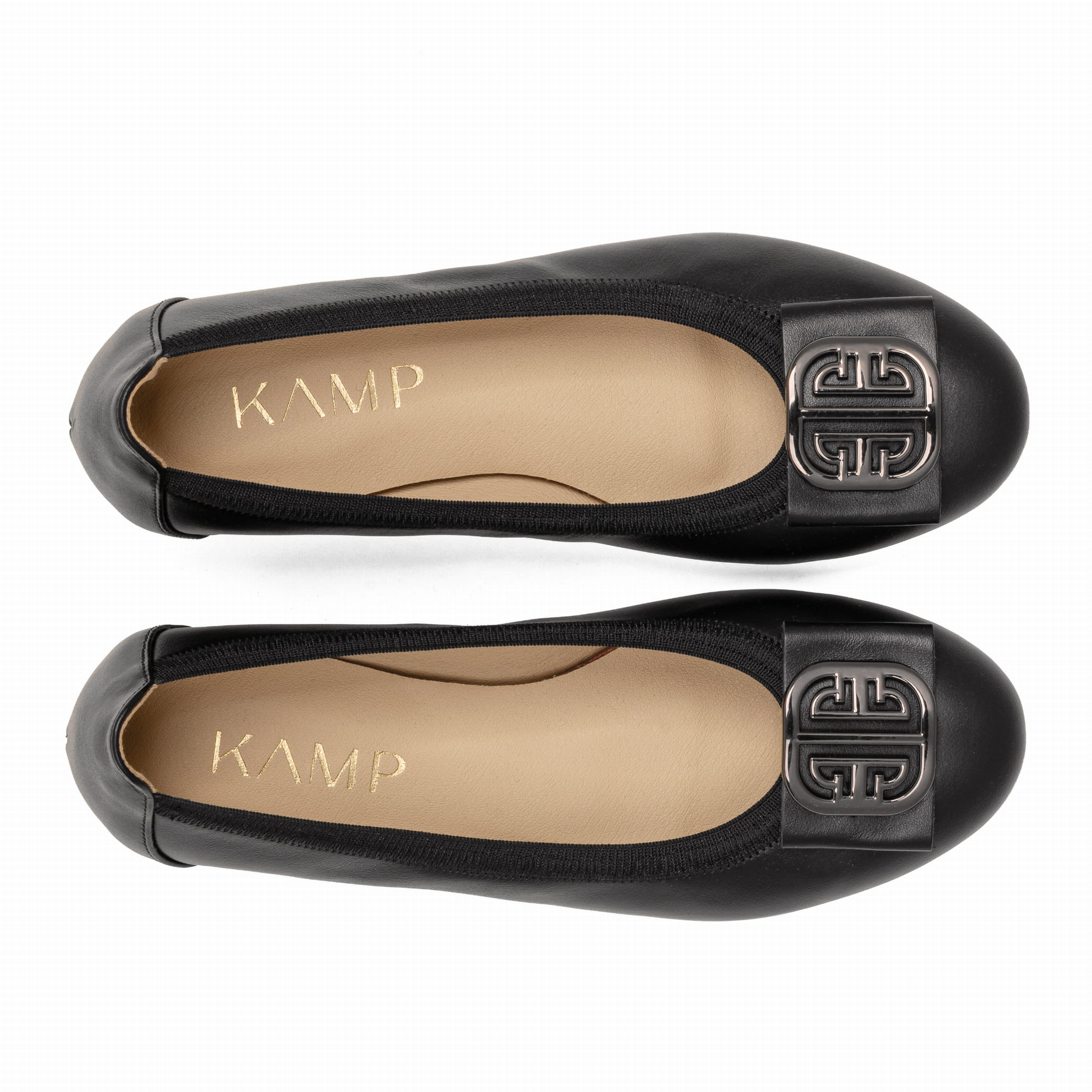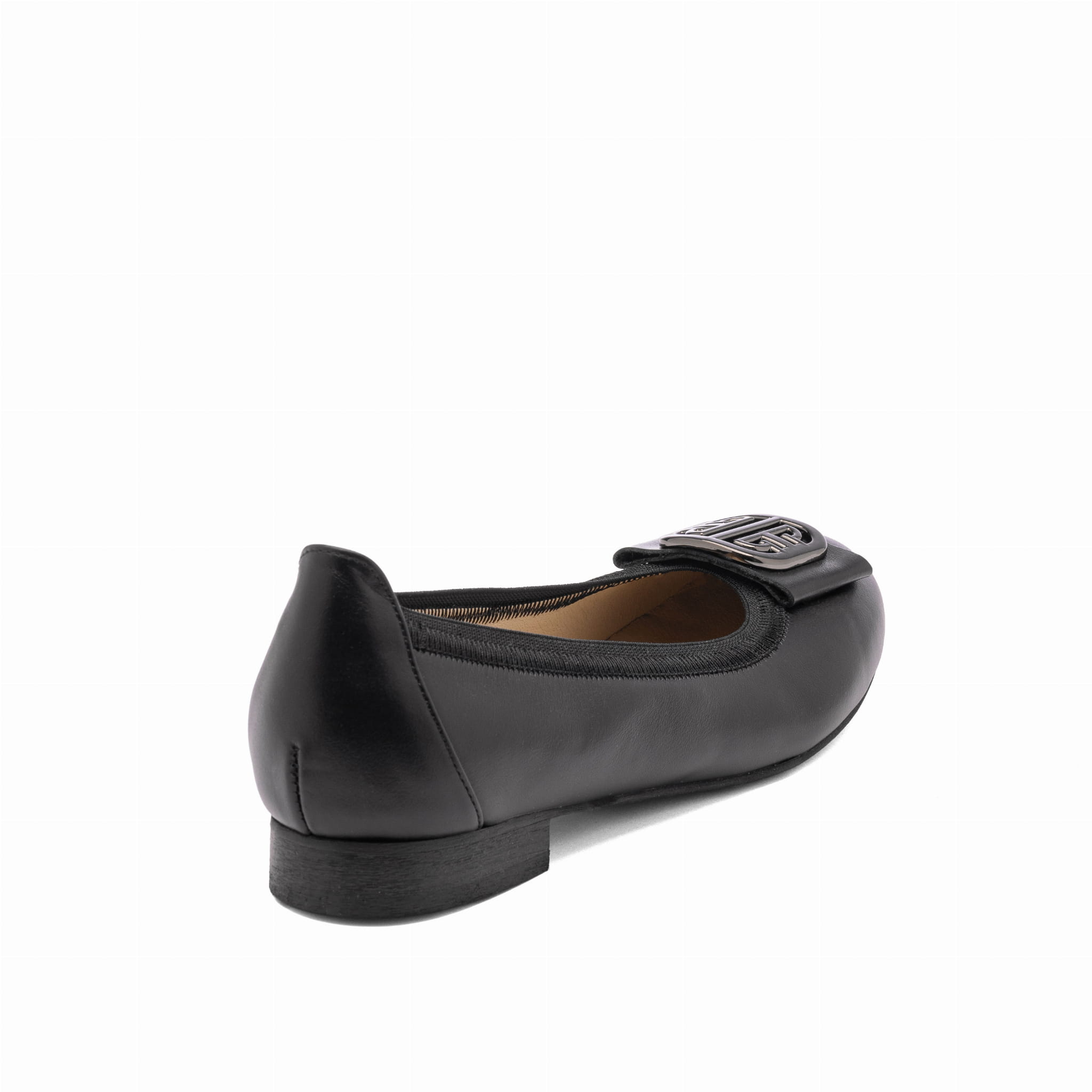 Czarne baleriny damskie ze skóry naturalnej z metalową klamrą KAMP