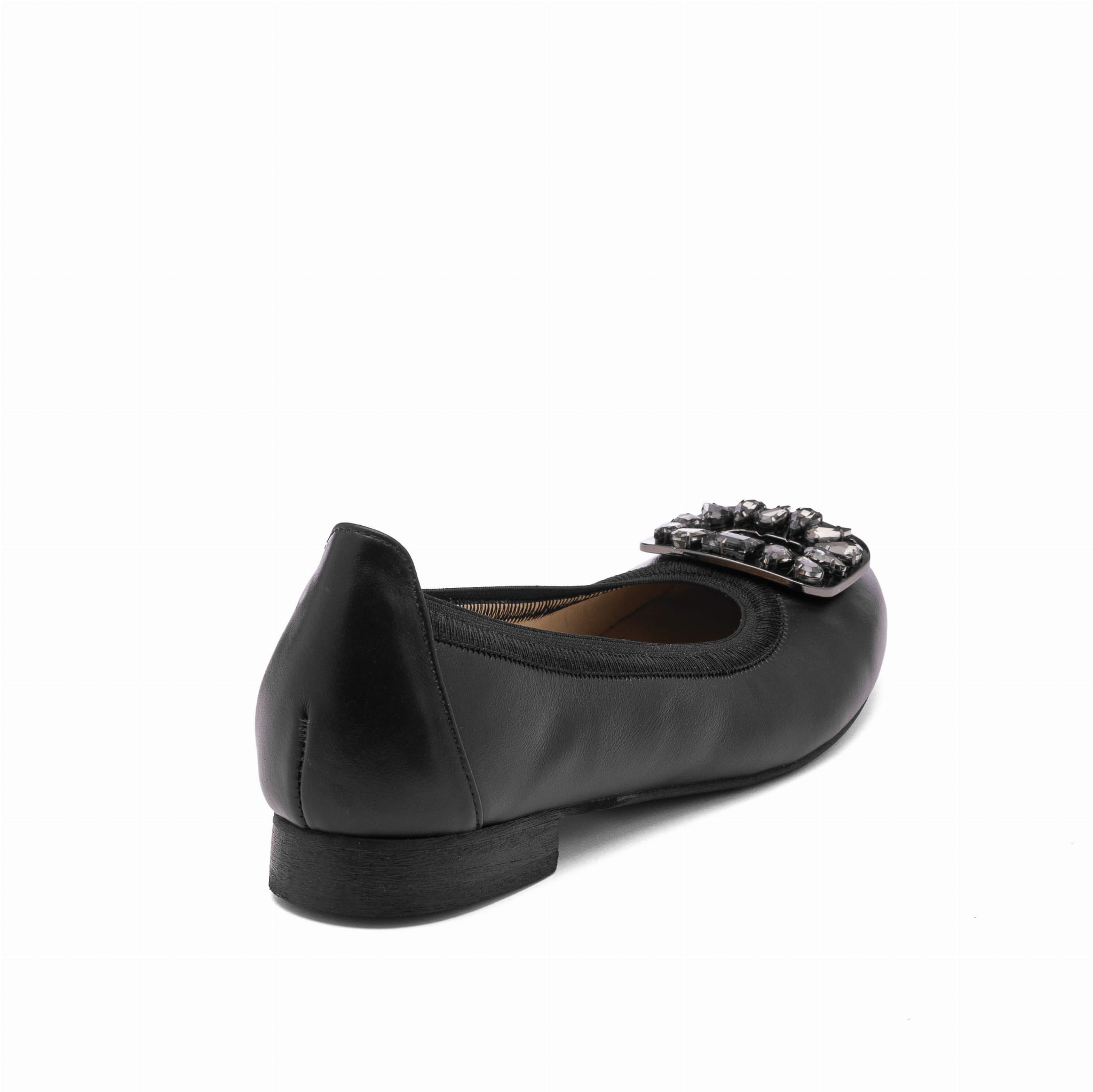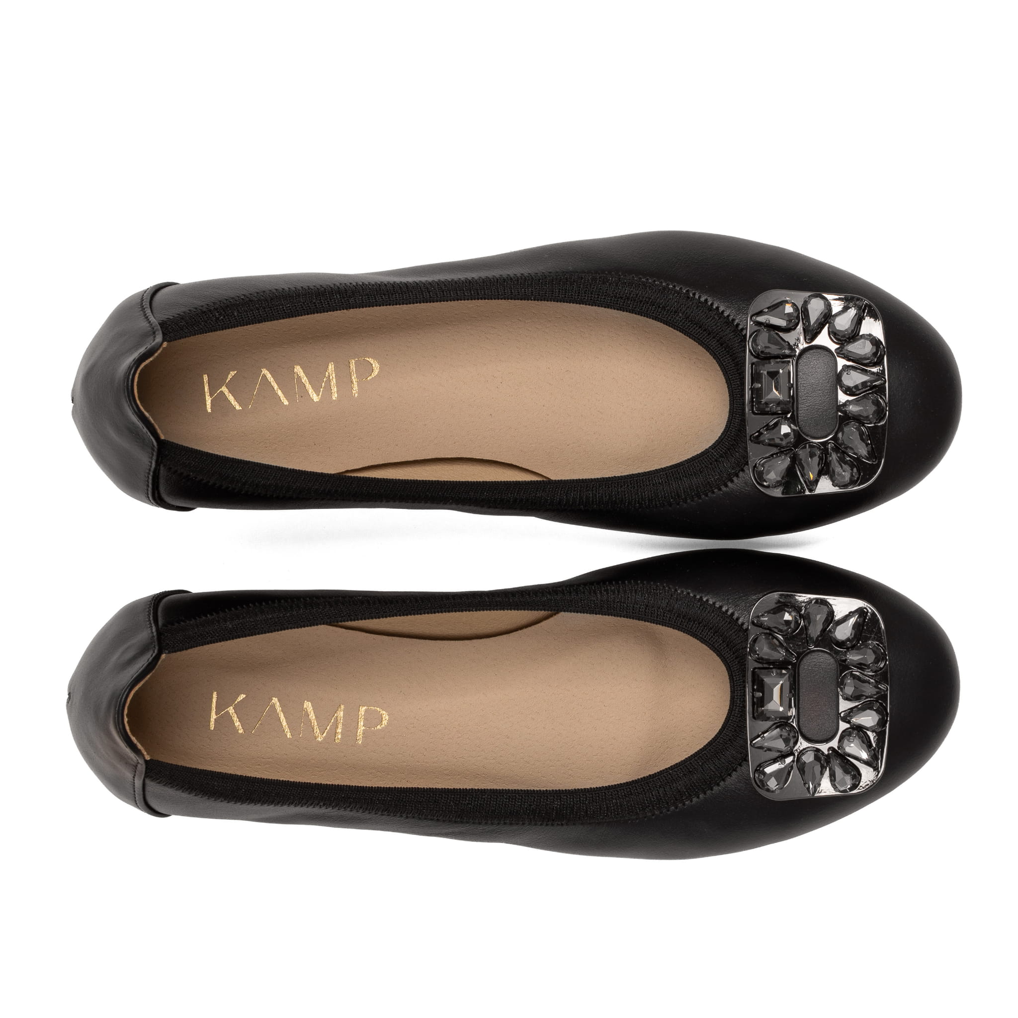 Czarne baleriny skórzane KAMP z biżuteryjną ozdobą