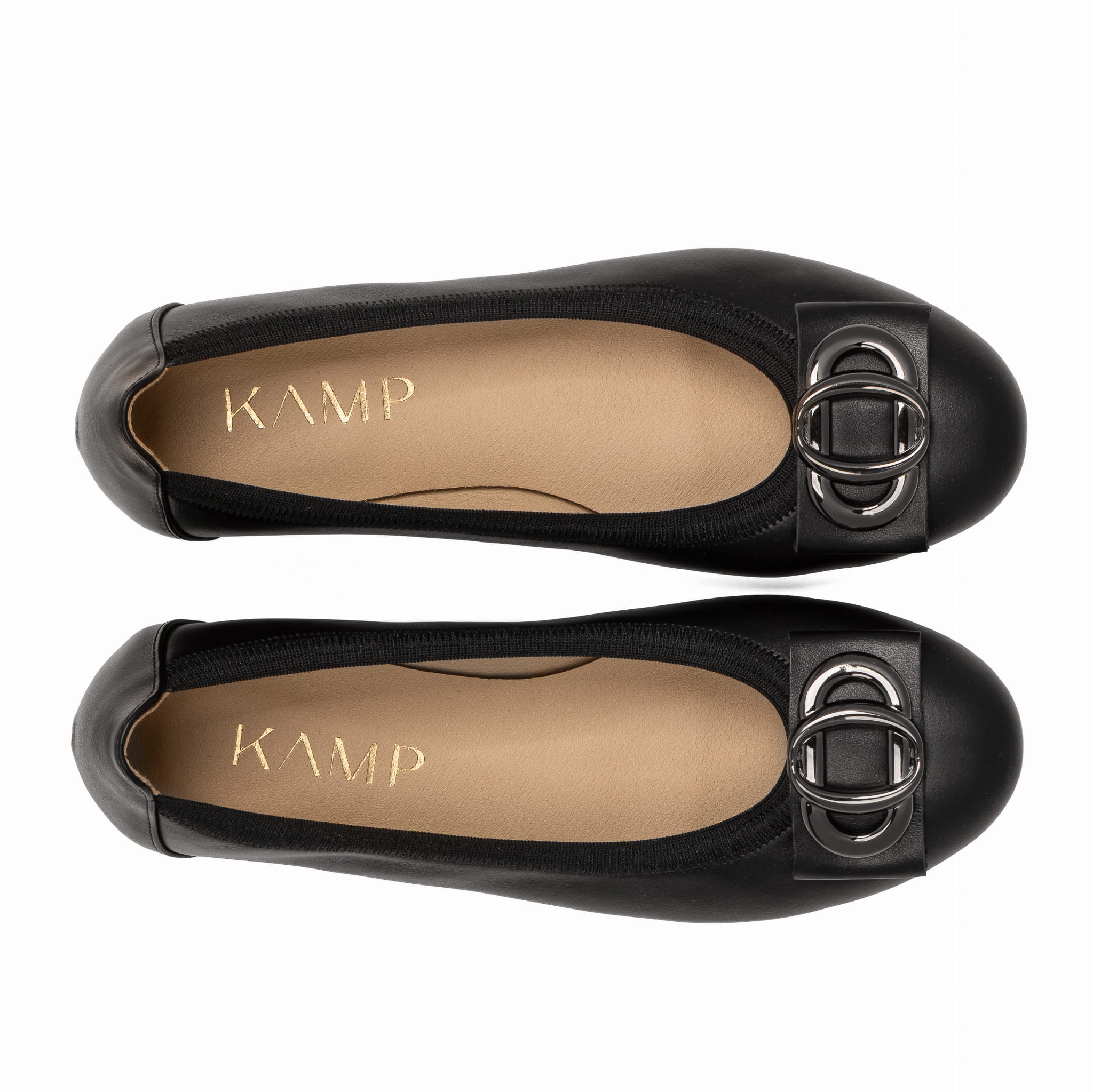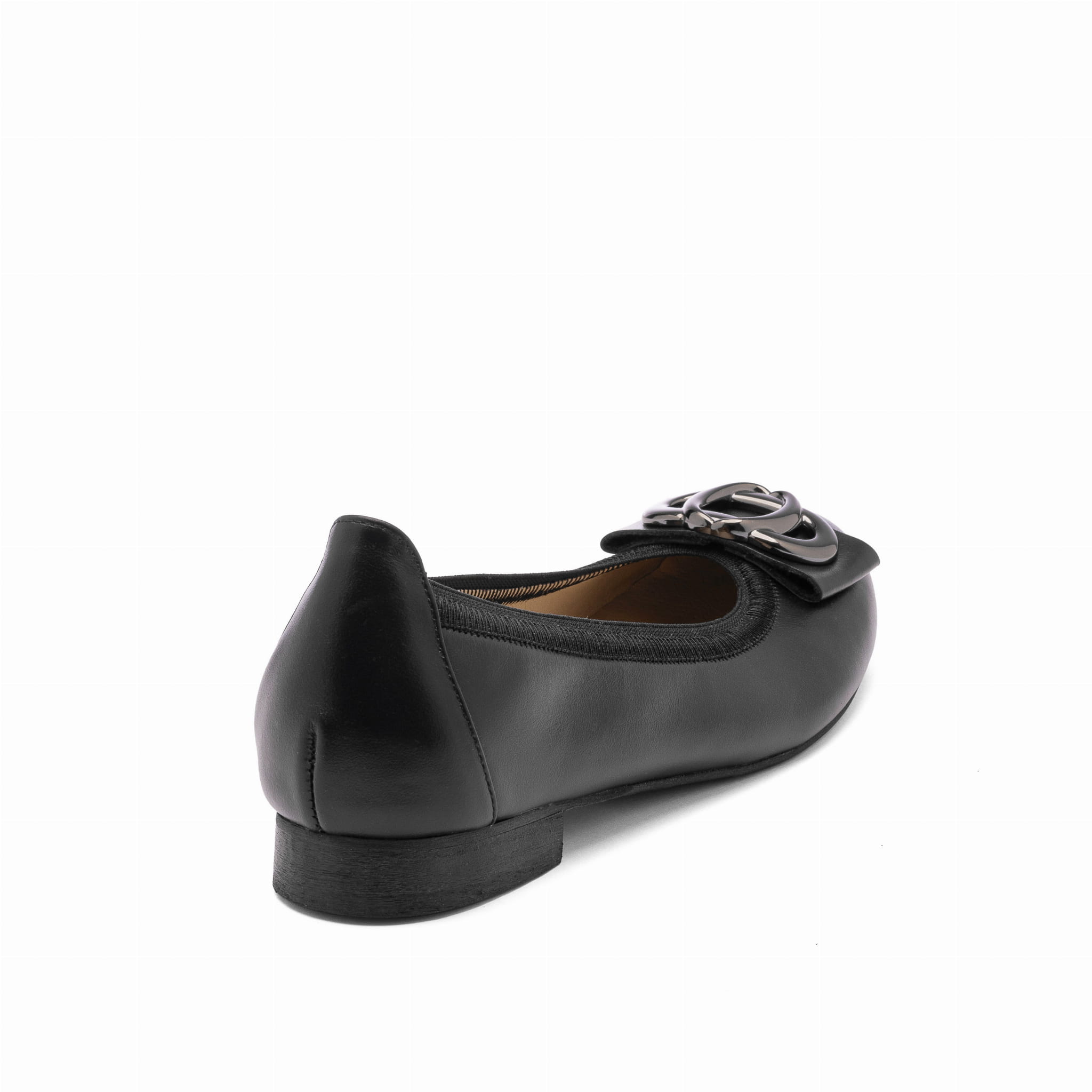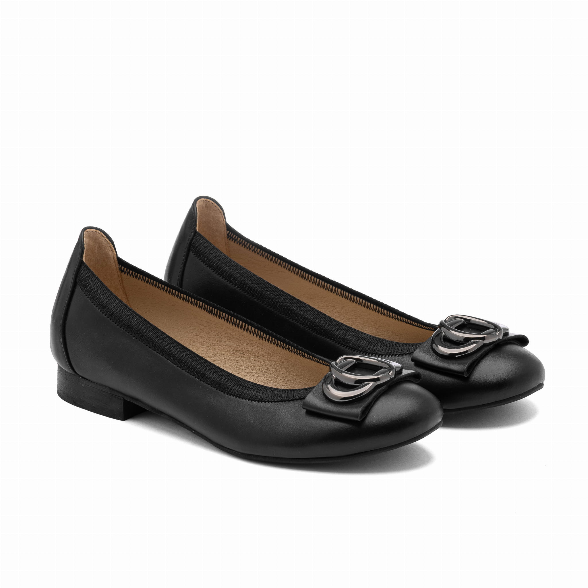 Czarne baleriny skórzane premium z ozdobą podwójne kółka