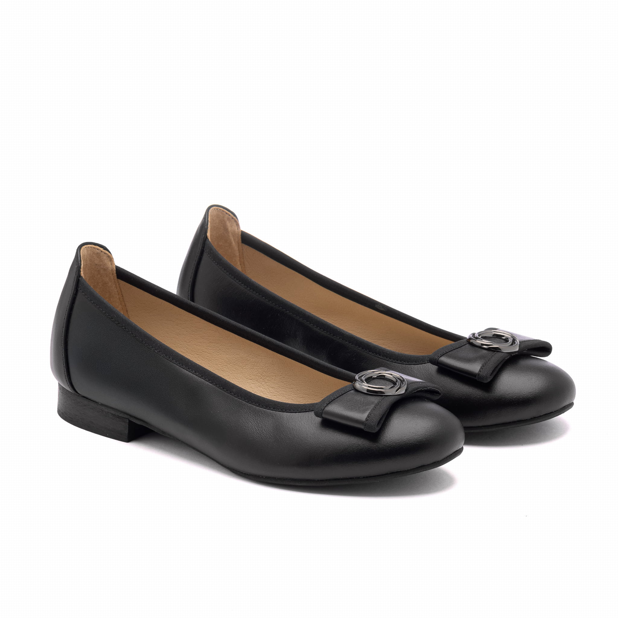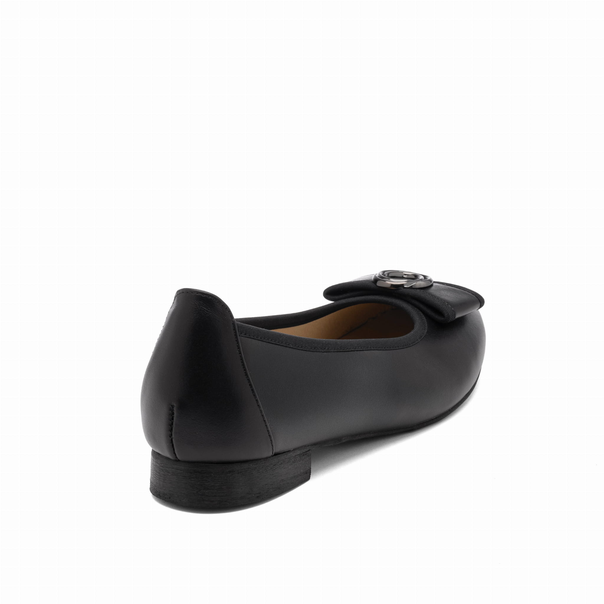 Jeśli szukasz czarnych balerin damskich, które wyglądają elegancko, ale nadal są typowo „do chodzenia”, ten model jest dokładnie w tym klimacie. To baleriny skórzane w klasycznej czerni, z subtelną ozdobą w formie podwójnego kółka (klamry) na przodzie. Detal jest wyrazisty, ale nie krzyczy, więc buty pasują i do pracy, i do codziennych stylizacji.